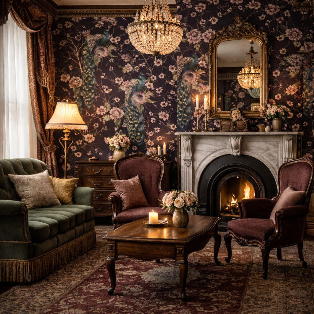 Ursula Way Chinoiserie Peacock Peel and Stick and Traditional Wallpaper