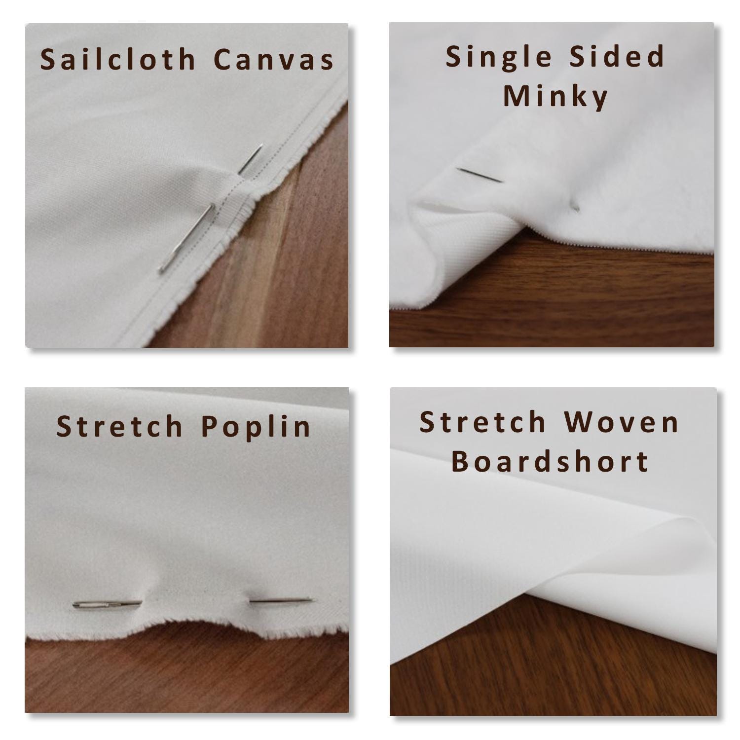 Trying to decide which fabric to use for your next project? Order a sample pack. The pack include BLANK fabric samples of each of our fabrics. THERE IS NO DESIGN ON THE SAMPLES.