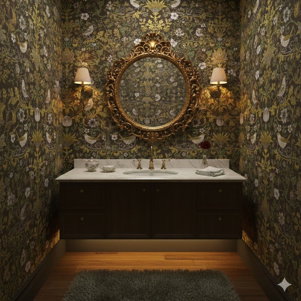 Albion Terrace Woodland Art Nouveau Peel and Stick and Traditional Wallpaper