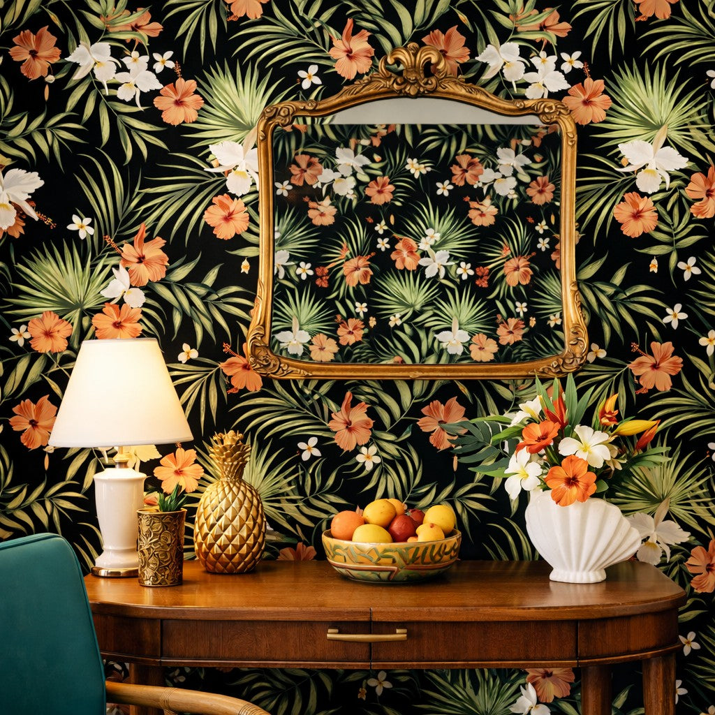 Beeches Coast is a lovely, dark vintage tropical wallpaper. This design would make a fabulous accent wall. The best part? It’s peel and stick for easy application and removal.